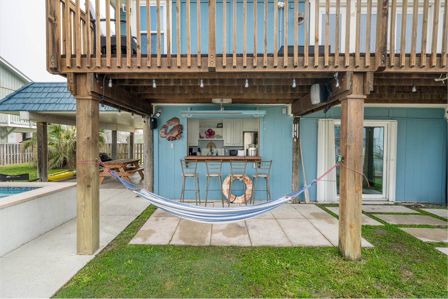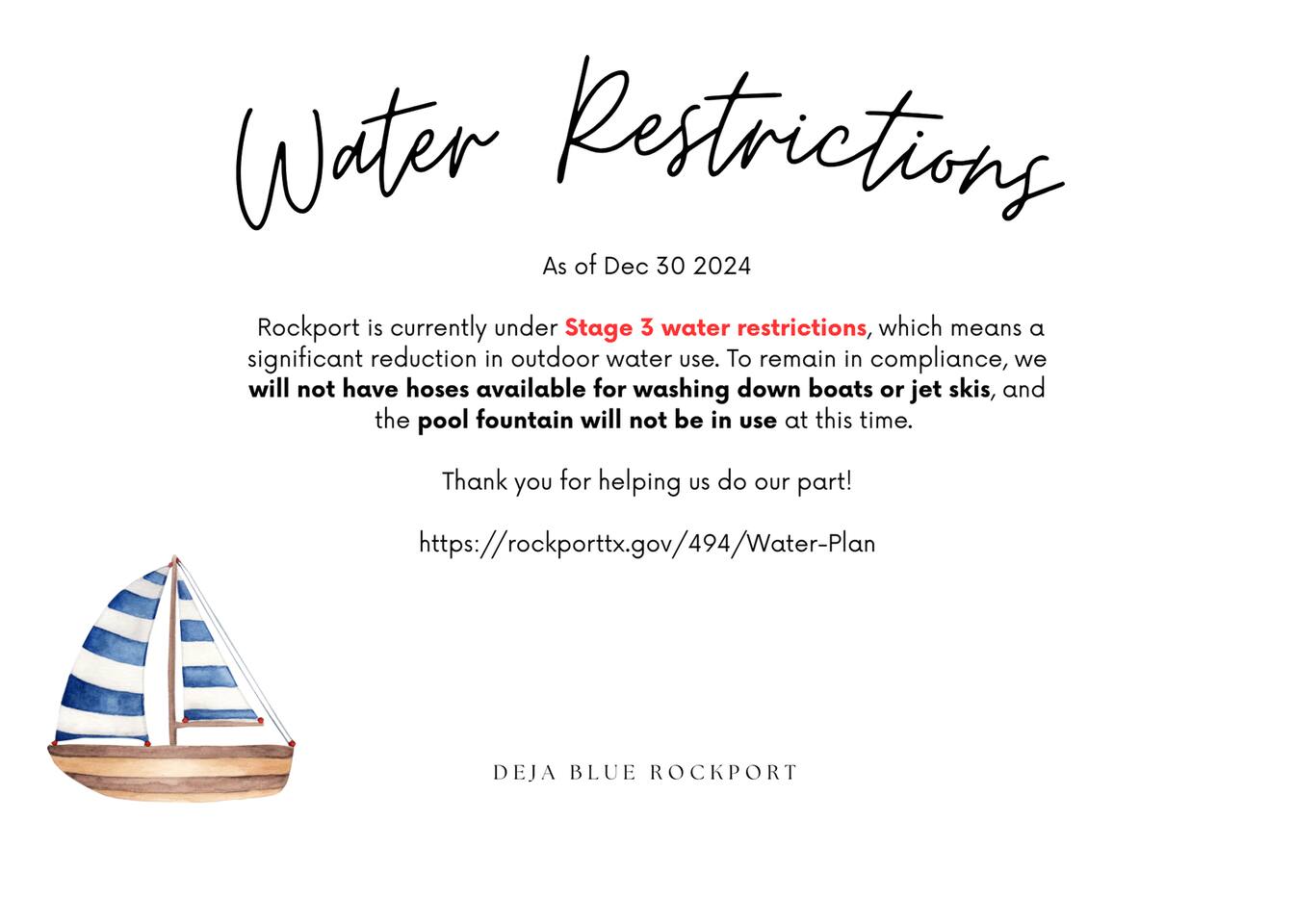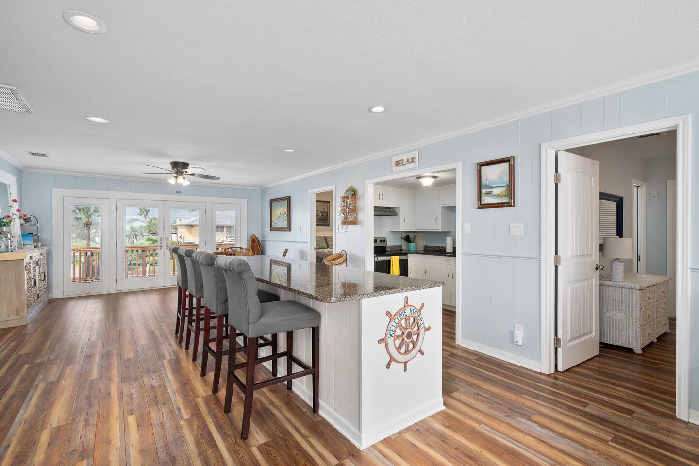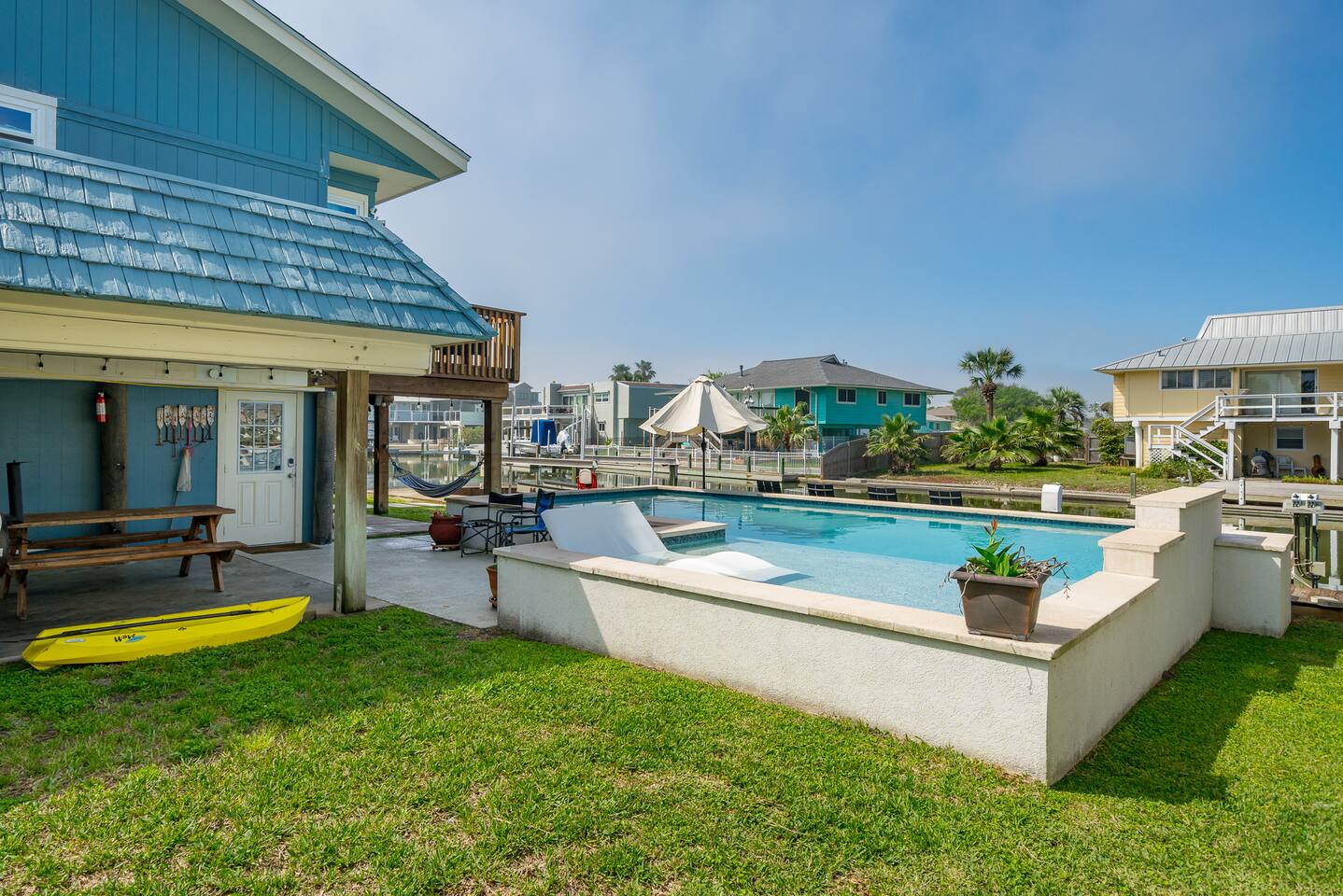 Whether you're looking to relax by the water or enjoy fun-filled days outdoors, this waterfront escape in Rockport’s Key Allegro community has everything you need for a memorable vacation. <b>Our favorite features at this Rockport Waterfront Haven:</b> → <b>Stunning waterfront views</b> right in the heart of Key Allegro → <b>Private heated pool</b> with comfortable lounge seating for soaking up the sun → <b>Private dock</b>—perfect for fishing or docking your boat (Boats and jet skis not provided) → Outdoor amenities include a <b>hammock, shaded picnic table</b>, and <b>charcoal grill</b> for cookouts → Spacious <b>patio with pool furniture</b>, ideal for outdoor gatherings or relaxing by the water → <b>Washer and dryer</b> for your convenience → <b>Free parking for up to 6 cars</b> in the driveway, with additional parking on the street → <b>Security cameras</b> four cameras, all outside, ensuring peace of mind during your stay <b>The well-stocked kitchens include:</b> → <b>Modern appliances</b> including full-size refrigerators, <b>icemaker</b>, and dishwashers → Coffee enthusiasts will love the <b>Keurig and regular coffee maker</b> options → <b>Blender, toaster, and essential kitchen utensils</b> for all your cooking needs → Wine glasses and a wine opener for an evening of relaxation <b>Sleeping arrangements:</b> → <b>Bedroom #1</b> (Ground floor): Queen-size bed with en-suite bathroom—no stairs required → <b>Bedroom #2</b> (Second floor): King-size bed, connected to a Jack-and-Jill bathroom → <b>Bedroom #3</b> (Second floor): King-size bed, shared Jack-and-Jill bathroom → <b>Bedroom #4</b> (Second floor): King-size bed, shared Jack-and-Jill bathroom → <b>Bedroom #5</b> (Second floor): Queen over Queen bunk bed, connected to a Jack-and-Jill bathroom → Additional sleeping: Comfortable and spacious couch plus an air mattress on the ground-floor living area for extra guests → Additional sleeping: Comfortable and spacious couch on second floor for an extra guest <b>Perfect for families and friends:</b> Spend your days lounging by the <b>private pool</b>, fishing from your <b>private dock</b>, or enjoying a meal on the <b>patio with a view</b>. Located just minutes from <b>Rockport Beach Park</b> and <b>downtown Rockport</b>, this home offers the perfect mix of relaxation and adventure. Whether you’re hosting a family BBQ with the <b>charcoal grill</b> or unwinding in the <b>hammock</b>, this home has everything you need for the ultimate waterfront getaway. <b>Ground Floor: Comfort and Convenience by the Water</b> <b>Relaxing Living Area</b> Step into the cozy ground-floor living room, where relaxation and comfort blend seamlessly with style. This inviting space features a comfortable couch and space for an air mattress, accommodating additional guests. With a <b>smart TV</b> for entertainment and direct access to the <b>outdoor bar and pool area</b>, it's the perfect spot for both lounging indoors and enjoying the outdoor amenities. <b>Fully-Equipped Kitchen with Outdoor Bar Access</b> The ground-floor kitchen is perfectly positioned for entertaining, with modern appliances and plenty of counter space. But what sets it apart is its direct connection to the outdoors — the kitchen opens into a <b>charming outside bar with seating</b>! Whether you're preparing snacks or mixing drinks, you can easily serve guests by the pool or at the bar, ensuring that everyone stays connected during mealtime or happy hour. This space is perfect for casual dining and poolside fun. <b>Second Floor: Elevated Living and Scenic Dining</b> <b>Bright and Spacious Living Area</b> Upstairs, the second-floor living room provides a comfortable and airy retreat with sweeping views of the waterfront. Large <b>glass doors</b> open onto the balcony, where you can enjoy your morning coffee with the sound of the water as your backdrop. Inside, plush seating and a <b>smart TV</b> create a cozy environment for relaxing or catching up on your favorite shows. The perfect blend of comfort and style awaits. <b>Full Kitchen and Charming Dining Area</b> The second-floor kitchen is a chef's delight, featuring modern appliances, generous counter space, and a convenient island with bar seating. Whether you're whipping up a quick breakfast or preparing a full dinner for the family, this kitchen is equipped with everything you need. Adjacent to the kitchen is a cozy dining area with a table that seats your whole group. The room is bathed in <b>natural light</b>, with direct access to the <b>balcony</b>, offering beautiful views as you dine together. <b>Restful Retreats: Bedrooms for Every Guest</b> This spacious home offers five beautifully furnished bedrooms spread across two floors, ensuring comfort and privacy for every guest. The <b>ground floor</b> features a convenient, easily accessible bedroom with a <b>queen-size bed</b> and a connected private bathroom—ideal for guests who prefer to avoid stairs. On the <b>second floor</b>, you’ll find four additional bedrooms, each thoughtfully designed for comfort and relaxation. The <b>master bedroom features a king-size bed</b> and shares a Jack-and-Jill bathroom with a <b>king bedroom</b>, offering both privacy and convenience. Another <b>king bedroom</b> and a bedroom with <b>queen over queen bunk beds</b> are also connected via a second Jack-and-Jill bathroom, perfect for families or groups traveling together. Each room is adorned with coastal-inspired décor, ample storage, and plenty of natural light, creating a serene atmosphere for a restful night’s sleep. Whether you're traveling with family or a group of friends, these cozy, well-appointed bedrooms ensure everyone has a comfortable place to unwind after a day of fun. <b>Outdoor Space: Relax and Play by the Waterfront</b> The expansive outdoor space at this home offers everything you need for a perfect waterfront getaway. The <b>private dock</b> provides easy access for <b>fishi