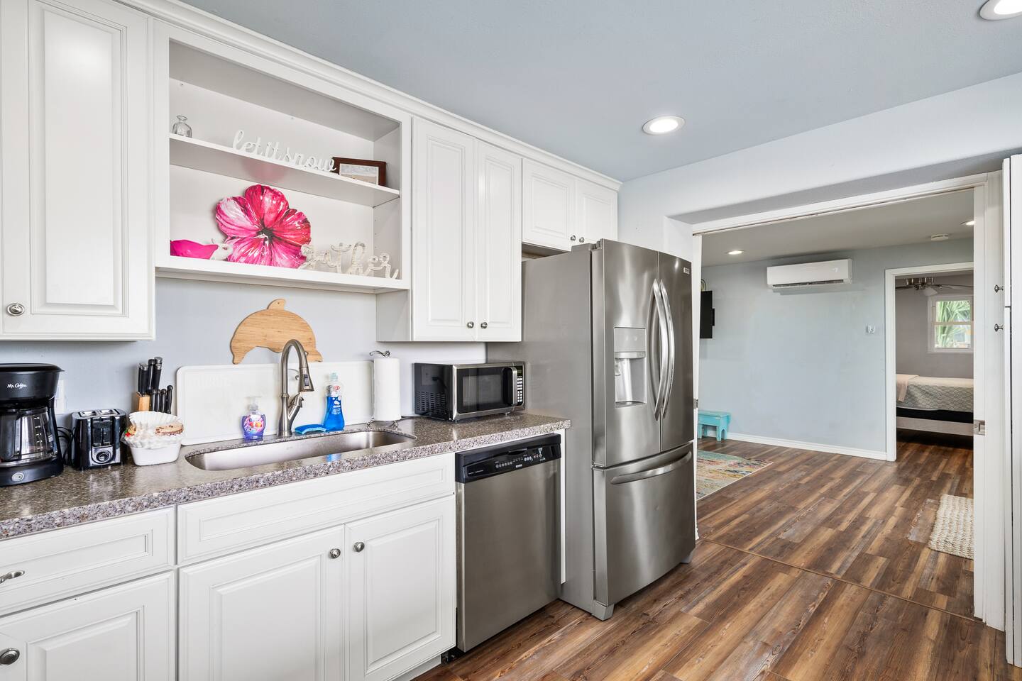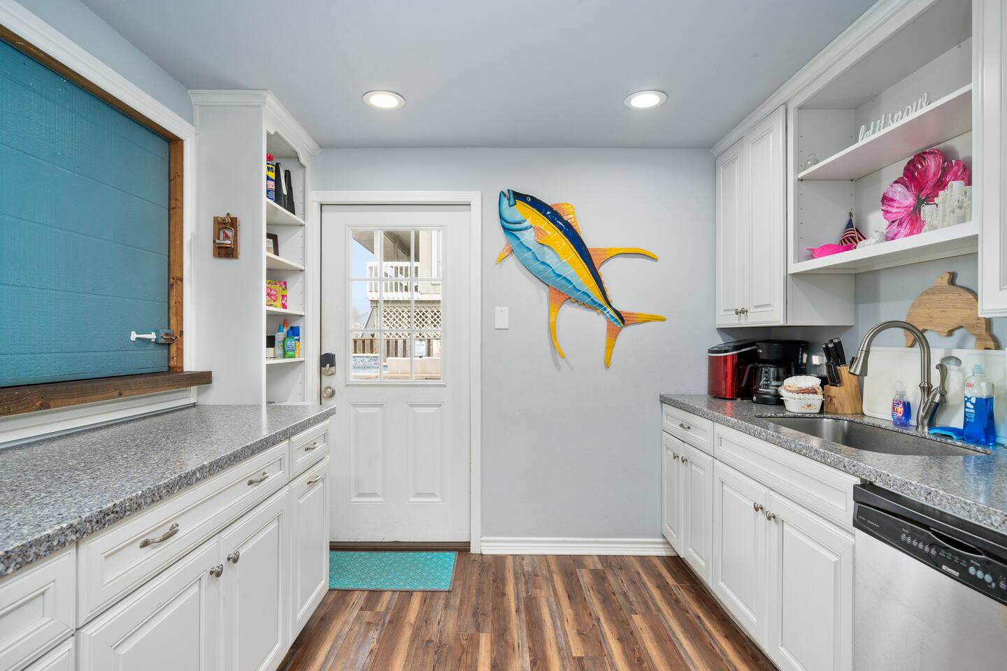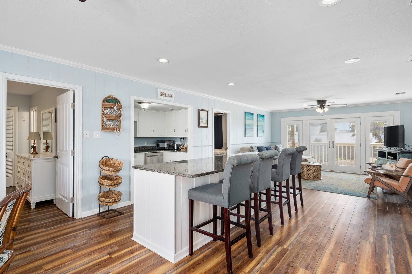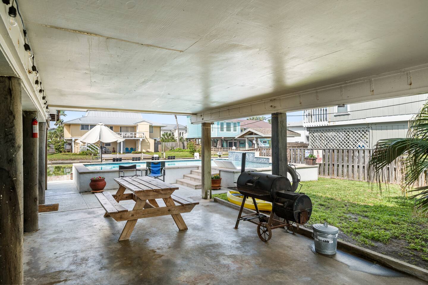 Whether you're looking to relax by the water or enjoy fun-filled days outdoors, this waterfront escape in Rockport’s Key Allegro community has everything you need for a memorable vacation. <b>Our favorite features at this Rockport Waterfront Haven:</b> → <b>Stunning waterfront views</b> right in the heart of Key Allegro → <b>Private heated pool</b> with comfortable lounge seating for soaking up the sun → <b>Private dock</b>—perfect for fishing or docking your boat (Boats and jet skis not provided) → Outdoor amenities include a <b>hammock, shaded picnic table</b>, and <b>charcoal grill</b> for cookouts → Spacious <b>patio with pool furniture</b>, ideal for outdoor gatherings or relaxing by the water → <b>Washer and dryer</b> for your convenience → <b>Free parking for up to 6 cars</b> in the driveway, with additional parking on the street → <b>Security cameras</b> four cameras, all outside, ensuring peace of mind during your stay <b>The well-stocked kitchens include:</b> → <b>Modern appliances</b> including full-size refrigerators, <b>icemaker</b>, and dishwashers → Coffee enthusiasts will love the <b>Keurig and regular coffee maker</b> options → <b>Blender, toaster, and essential kitchen utensils</b> for all your cooking needs → Wine glasses and a wine opener for an evening of relaxation <b>Sleeping arrangements:</b> → <b>Bedroom #1</b> (Ground floor): Queen-size bed with en-suite bathroom—no stairs required → <b>Bedroom #2</b> (Second floor): King-size bed, connected to a Jack-and-Jill bathroom → <b>Bedroom #3</b> (Second floor): King-size bed, shared Jack-and-Jill bathroom → <b>Bedroom #4</b> (Second floor): King-size bed, shared Jack-and-Jill bathroom → <b>Bedroom #5</b> (Second floor): Queen over Queen bunk bed, connected to a Jack-and-Jill bathroom → Additional sleeping: Comfortable and spacious couch plus an air mattress on the ground-floor living area for extra guests → Additional sleeping: Comfortable and spacious couch on second floor for an extra guest <b>Perfect for families and friends:</b> Spend your days lounging by the <b>private pool</b>, fishing from your <b>private dock</b>, or enjoying a meal on the <b>patio with a view</b>. Located just minutes from <b>Rockport Beach Park</b> and <b>downtown Rockport</b>, this home offers the perfect mix of relaxation and adventure. Whether you’re hosting a family BBQ with the <b>charcoal grill</b> or unwinding in the <b>hammock</b>, this home has everything you need for the ultimate waterfront getaway. <b>Ground Floor: Comfort and Convenience by the Water</b> <b>Relaxing Living Area</b> Step into the cozy ground-floor living room, where relaxation and comfort blend seamlessly with style. This inviting space features a comfortable couch and space for an air mattress, accommodating additional guests. With a <b>smart TV</b> for entertainment and direct access to the <b>outdoor bar and pool area</b>, it's the perfect spot for both lounging indoors and enjoying the outdoor amenities. <b>Fully-Equipped Kitchen with Outdoor Bar Access</b> The ground-floor kitchen is perfectly positioned for entertaining, with modern appliances and plenty of counter space. But what sets it apart is its direct connection to the outdoors — the kitchen opens into a <b>charming outside bar with seating</b>! Whether you're preparing snacks or mixing drinks, you can easily serve guests by the pool or at the bar, ensuring that everyone stays connected during mealtime or happy hour. This space is perfect for casual dining and poolside fun. <b>Second Floor: Elevated Living and Scenic Dining</b> <b>Bright and Spacious Living Area</b> Upstairs, the second-floor living room provides a comfortable and airy retreat with sweeping views of the waterfront. Large <b>glass doors</b> open onto the balcony, where you can enjoy your morning coffee with the sound of the water as your backdrop. Inside, plush seating and a <b>smart TV</b> create a cozy environment for relaxing or catching up on your favorite shows. The perfect blend of comfort and style awaits. <b>Full Kitchen and Charming Dining Area</b> The second-floor kitchen is a chef's delight, featuring modern appliances, generous counter space, and a convenient island with bar seating. Whether you're whipping up a quick breakfast or preparing a full dinner for the family, this kitchen is equipped with everything you need. Adjacent to the kitchen is a cozy dining area with a table that seats your whole group. The room is bathed in <b>natural light</b>, with direct access to the <b>balcony</b>, offering beautiful views as you dine together. <b>Restful Retreats: Bedrooms for Every Guest</b> This spacious home offers five beautifully furnished bedrooms spread across two floors, ensuring comfort and privacy for every guest. The <b>ground floor</b> features a convenient, easily accessible bedroom with a <b>queen-size bed</b> and a connected private bathroom—ideal for guests who prefer to avoid stairs. On the <b>second floor</b>, you’ll find four additional bedrooms, each thoughtfully designed for comfort and relaxation. The <b>master bedroom features a king-size bed</b> and shares a Jack-and-Jill bathroom with a <b>king bedroom</b>, offering both privacy and convenience. Another <b>king bedroom</b> and a bedroom with <b>queen over queen bunk beds</b> are also connected via a second Jack-and-Jill bathroom, perfect for families or groups traveling together. Each room is adorned with coastal-inspired décor, ample storage, and plenty of natural light, creating a serene atmosphere for a restful night’s sleep. Whether you're traveling with family or a group of friends, these cozy, well-appointed bedrooms ensure everyone has a comfortable place to unwind after a day of fun. <b>Outdoor Space: Relax and Play by the Waterfront</b> The expansive outdoor space at this home offers everything you need for a perfect waterfront getaway. The <b>private dock</b> provides easy access for <b>fishi