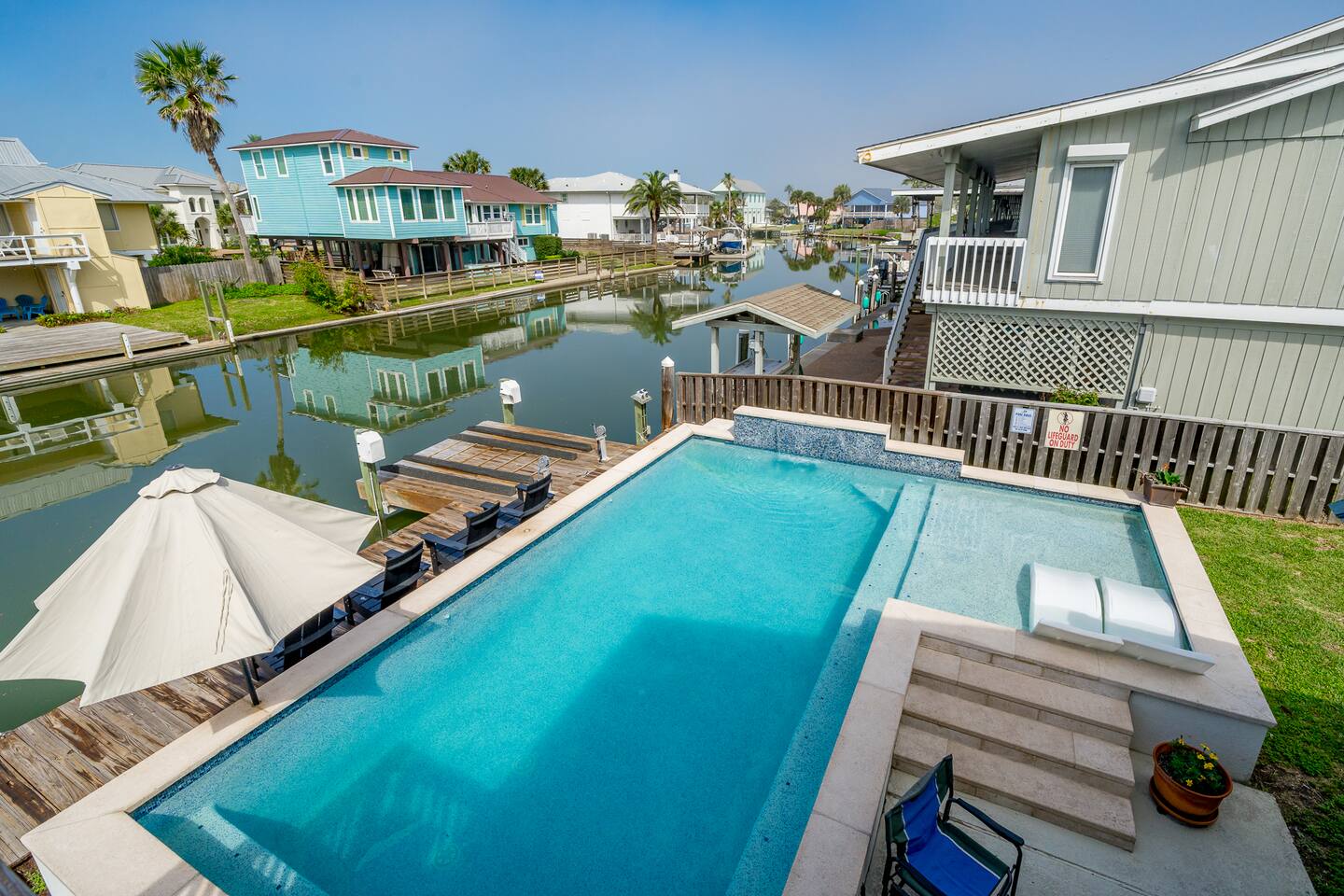Experience coastal living at its finest in this 5-bedroom waterfront retreat, sleeping up to 15 guests, located in Rockport’s sought-after Key Allegro. Enjoy your days lounging by the private heated pool, fishing off the dock, or relaxing in the hammock. This spacious home boasts two kitchens, multiple living areas, and expansive outdoor spaces perfect for family gatherings. Located minutes from Rockport Beach, downtown shops, and restaurants, it’s the perfect mix of relaxation and adventure.
